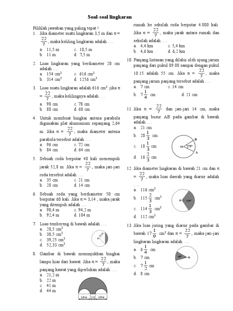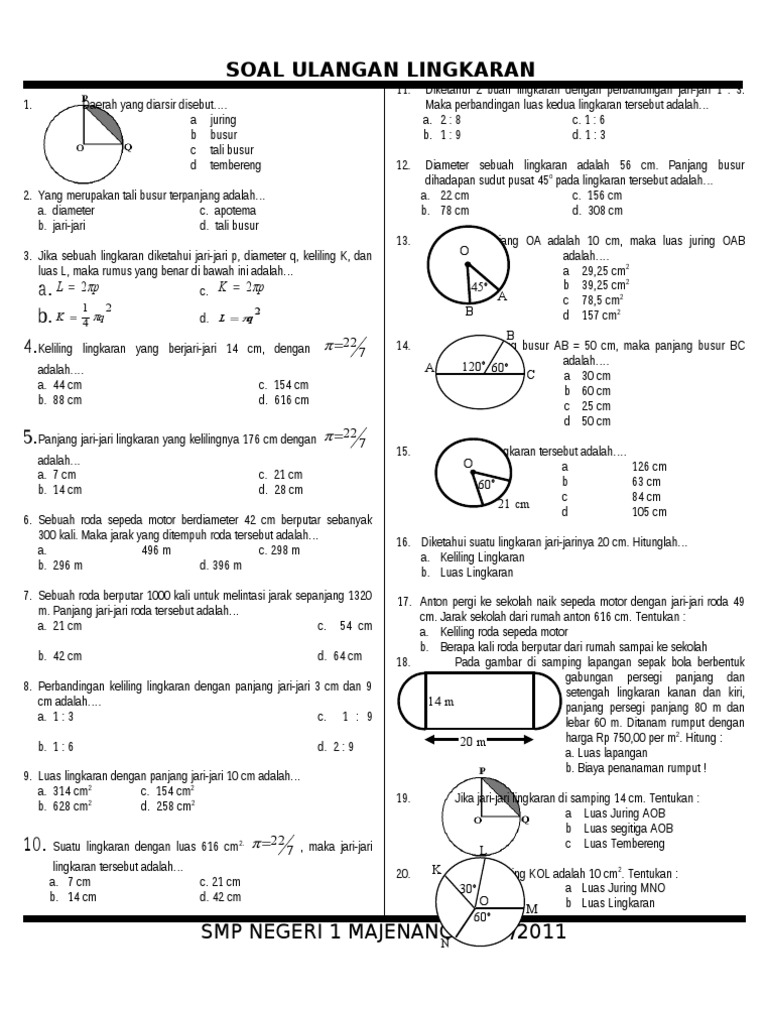 Soal latihan kelas 8 bab lingkaran doc berikut ini adalah soal latihan kelas 8 bab lingkaran doc yang bisa anda download secara gratis di website kami. Dari UKK inilah diharapkan guru. Soal terdiri dari 30 soal pilihan ganda.