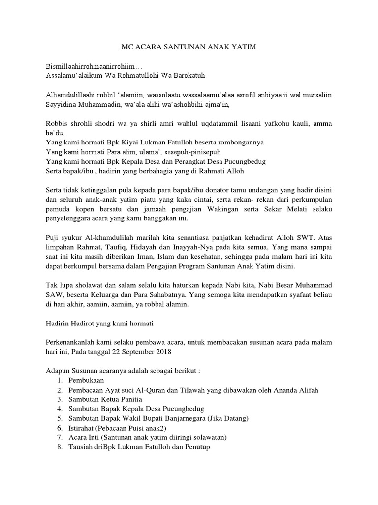 Contoh Kata Sambutan Ketua Panitia Acara Santunan Anak Yatim Blog Pendidikan