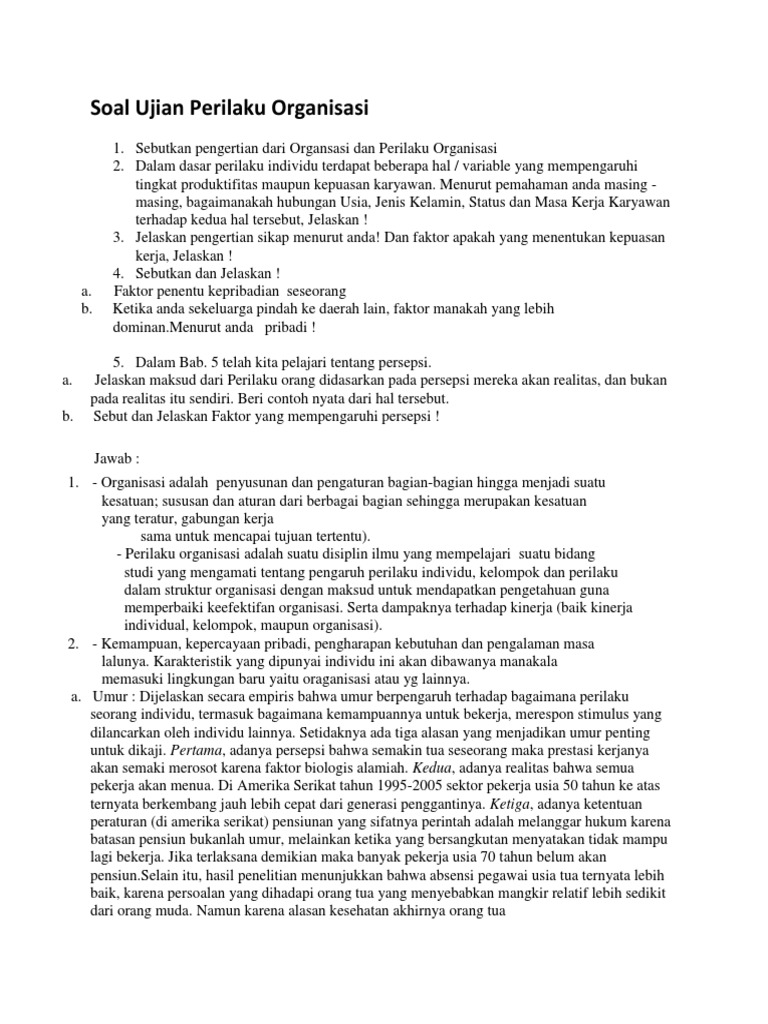 Soal Dan Jawaban Uas Perilaku Organisasi Soal Evaluasi